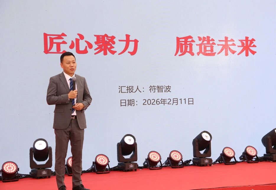 在热烈的掌声中,公司总经理符智波先生登台,作“匠心聚力,质造未来”主题分享。他首先回顾了携成在2025年取得的坚实步伐:产品研发持续创新,数字化管理深入推行,新增先进生产设备显著提升了运营效率。谈及挑战,他毫不回避,但更着重阐释了携成的选择——以“匠心”为魂,聚焦“质造”为本。