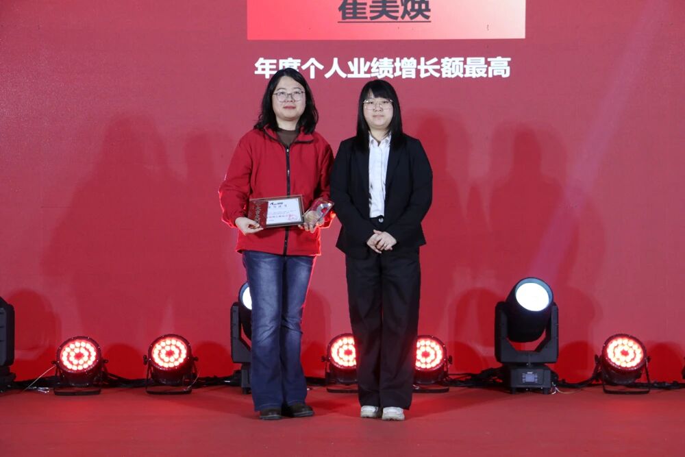 最后,聚焦于推动公司业绩增长与市场开拓的先锋力量,“业绩增长率最高奖”、“业绩增长额最高奖”、“年度销售冠军”及“年度完成率冠军”等奖项逐一揭晓。这些获奖者以敏锐的市场洞察、出色的专业能力和顽强的拼搏精神,为公司的业务发展注入了强劲动能,是开拓进取的杰出代表。