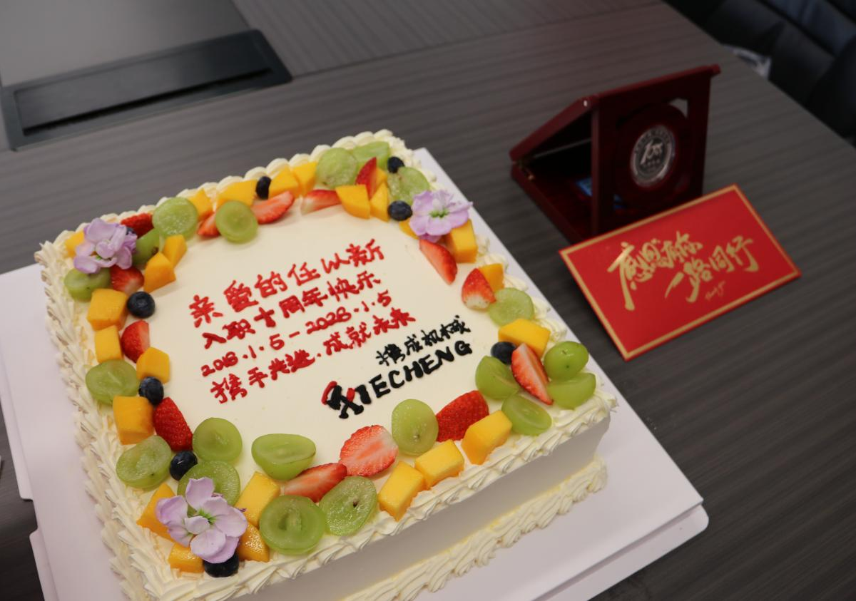 当天的纪念活动简单而温馨,国际销售部的同事们齐聚一堂,共同为任以新送上十周年的祝福。笑声与掌声交织,承载着团队深深的情谊与对她未来征程的美好期待。