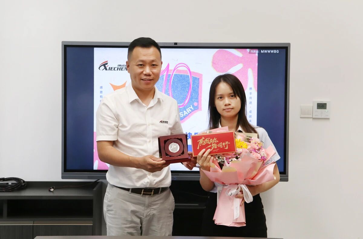 他们用十年光阴,书写了属于自己的职业篇章,也为携成的发展注入了源源不断的力量。感谢生产制造中心副总经理陆孝星与人事行政部陈兰英主管十年如一日的付出与热爱,愿他们在下一个十年,继续与携成并肩同行,共赴更远的山海。