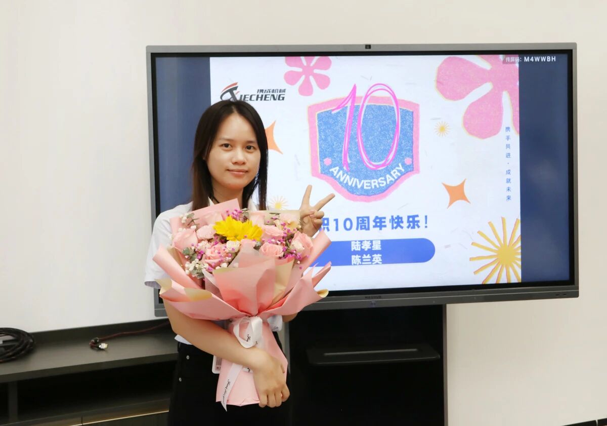 陈兰英主管也分享了自己的感悟,从初入公司时的青涩,到一步步成长为管理骨干,她感恩携成给予的信任与包容,坦言这十年是不断学习、不断努力的十年。